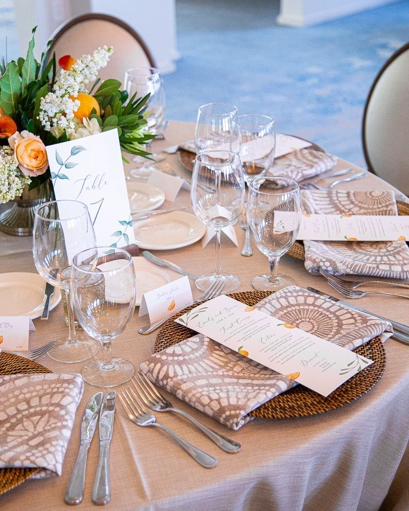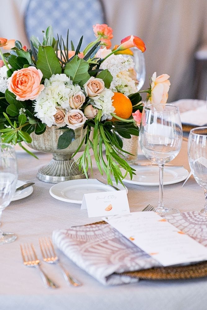 Accents of citrus made a sweet impression throughout this lovely wedding’s rehearsal, ceremony and brunch.
