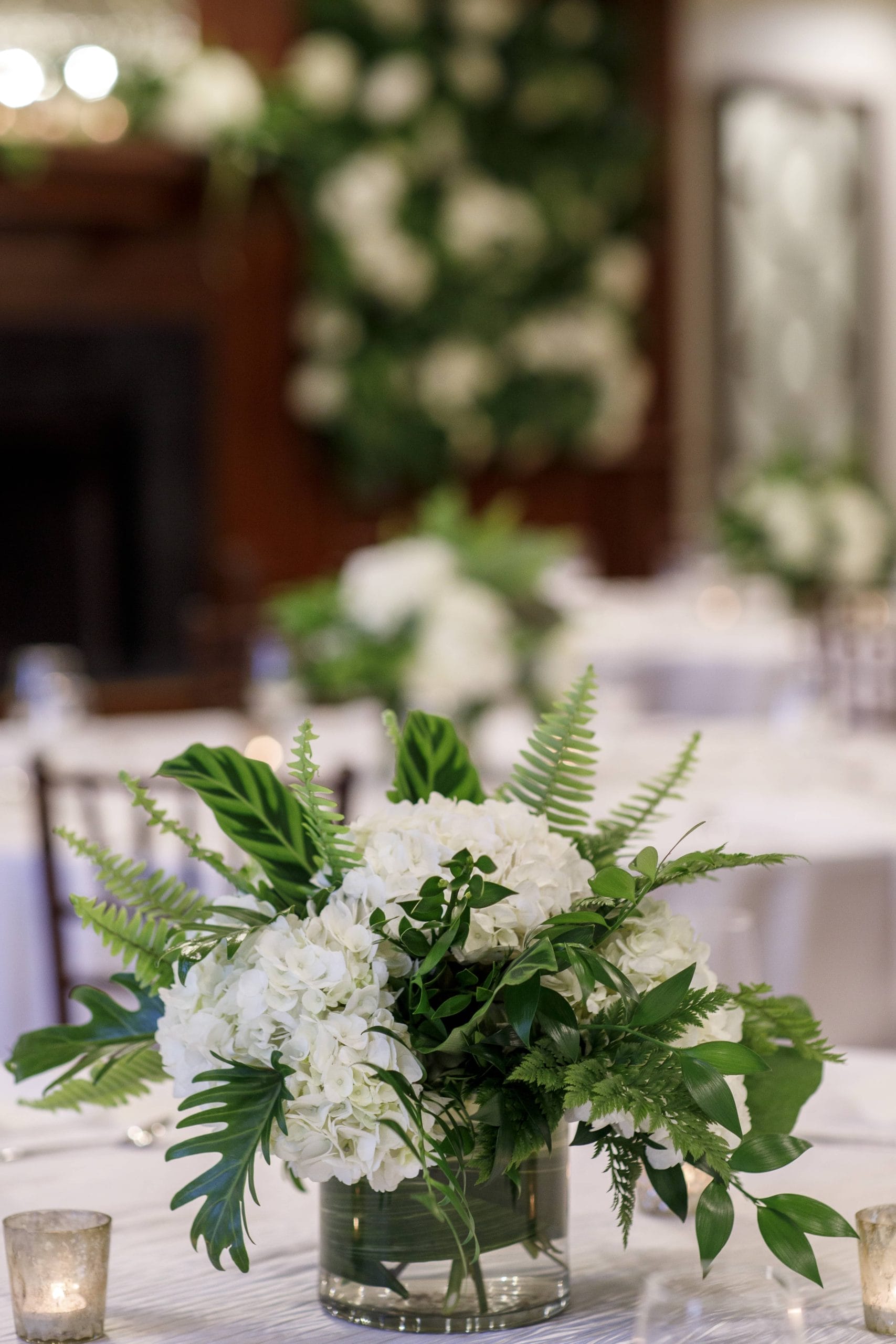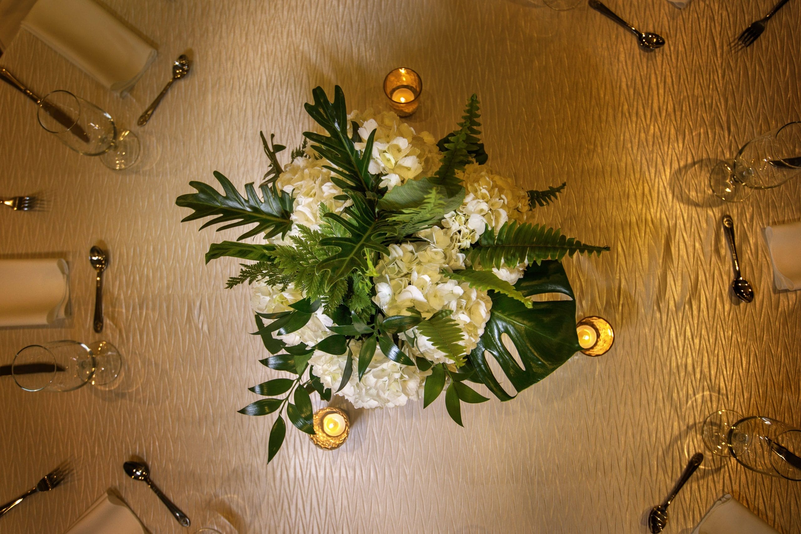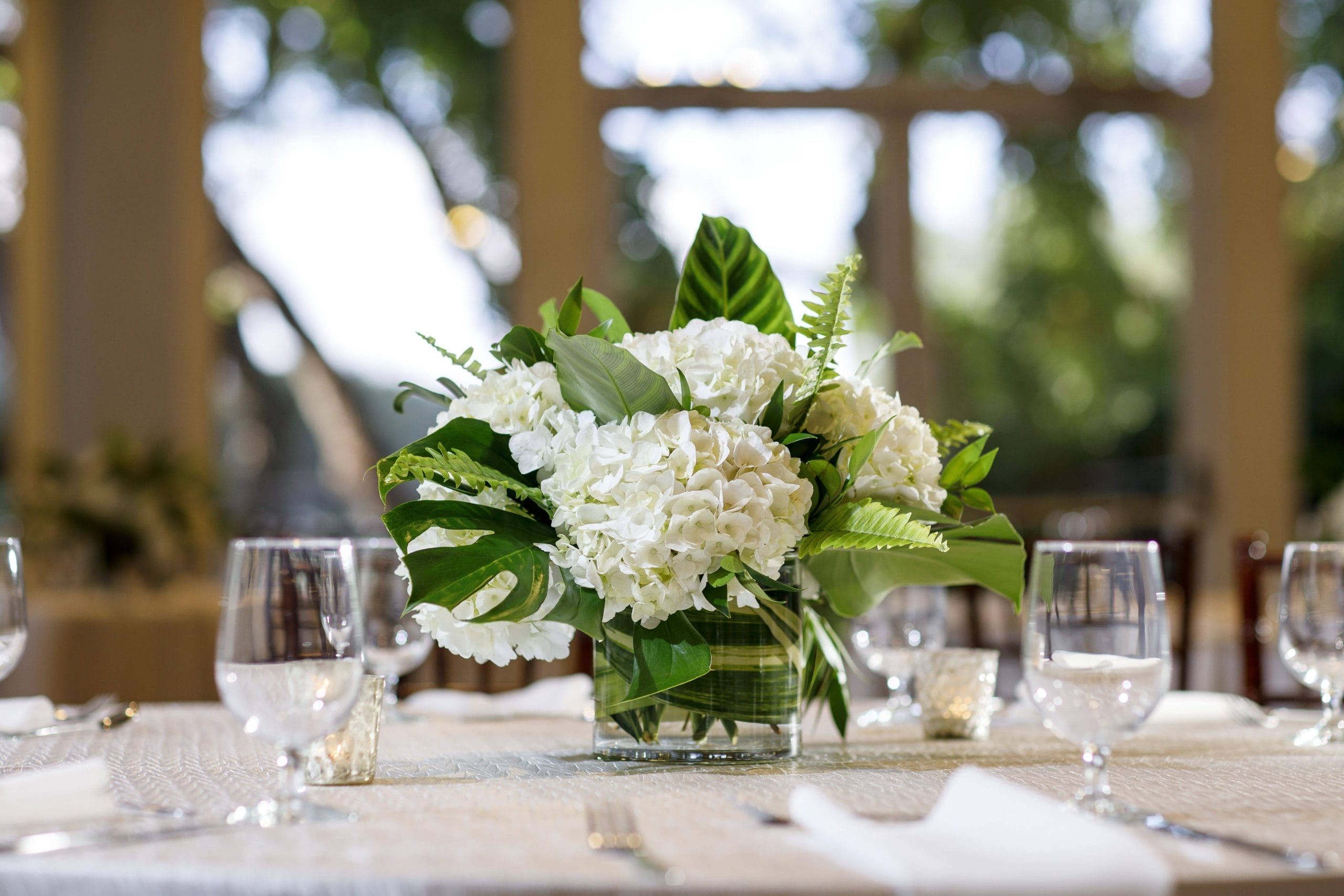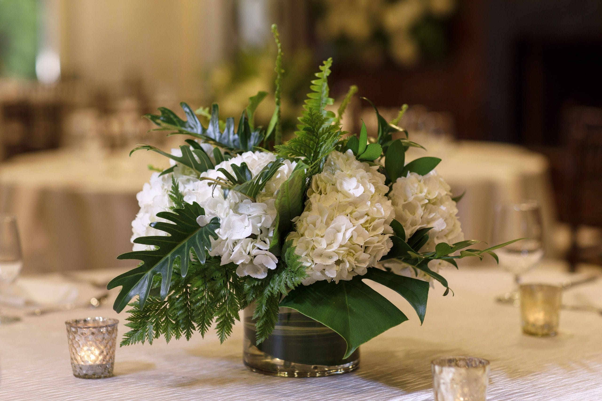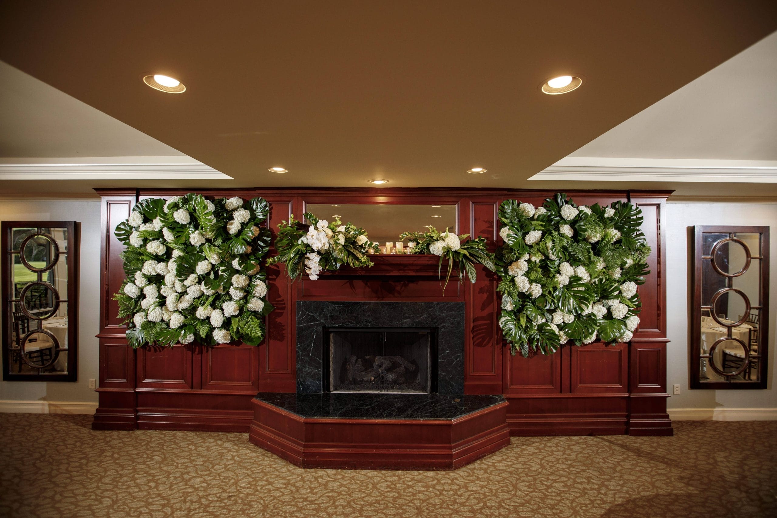 Making a statement! Adding a few statement areas with your decor can leave a lasting impression on your guests. For this lovely event we worked with the family to enhance the entrance area as well as create a floral wall of white hydrangea and tropical greenery (perfect for photo ops!).