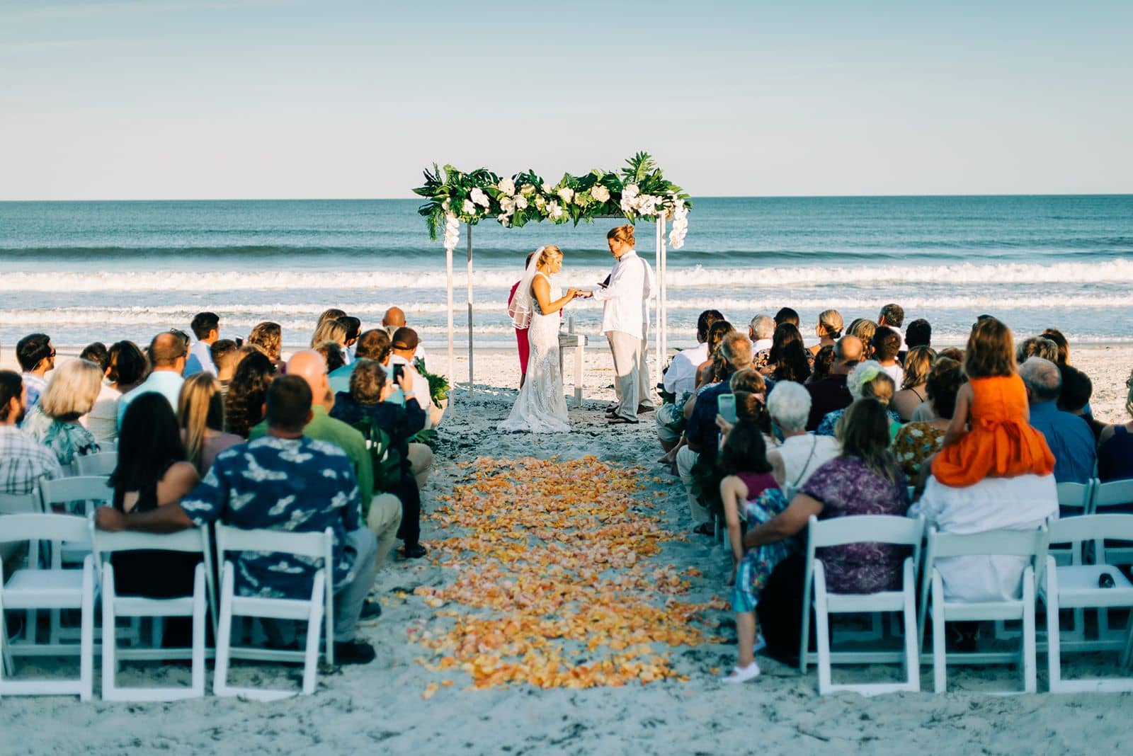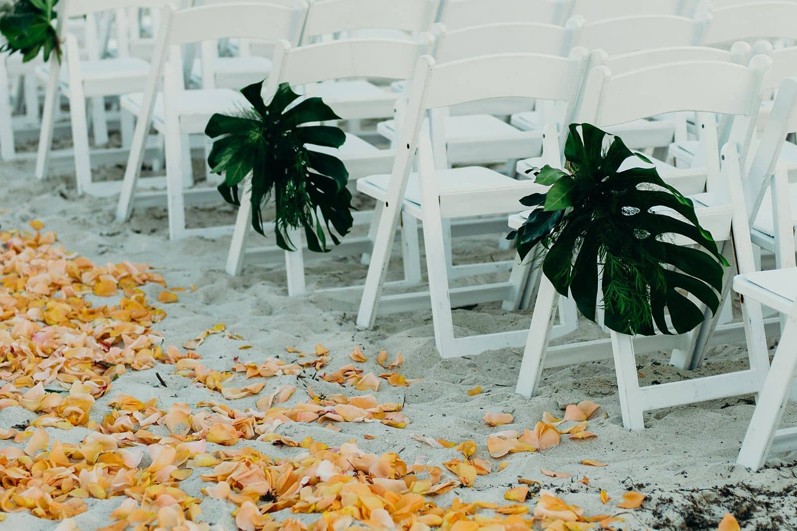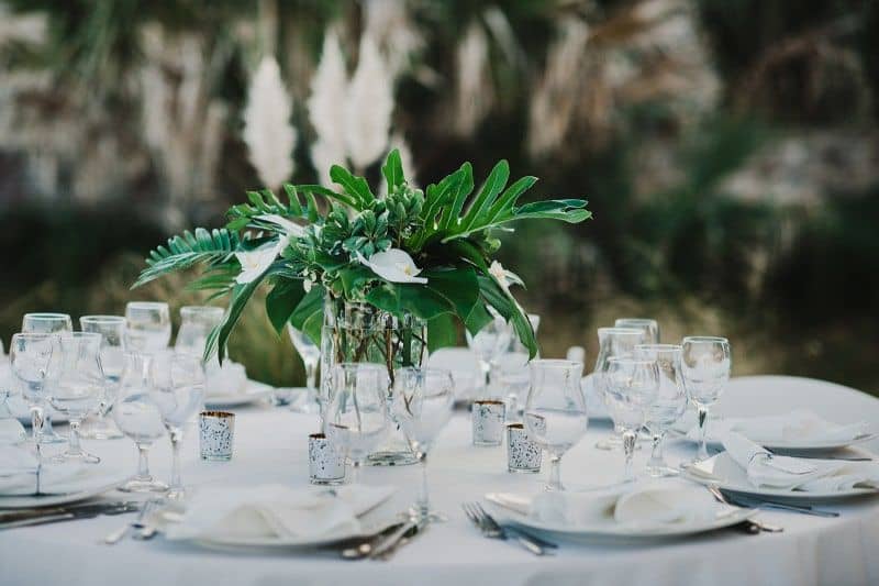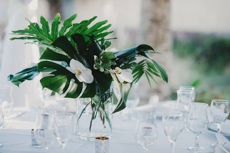 We have some of the best venues here on Amelia Island. Our most popular request is for elegant, tropical, beach style decor to coordinate with the views and scenery at the venue. With dark green tropical foliage being all the rage right now we love keeping it simple, highlighting just the greenery or accenting with one color or type of bloom.
